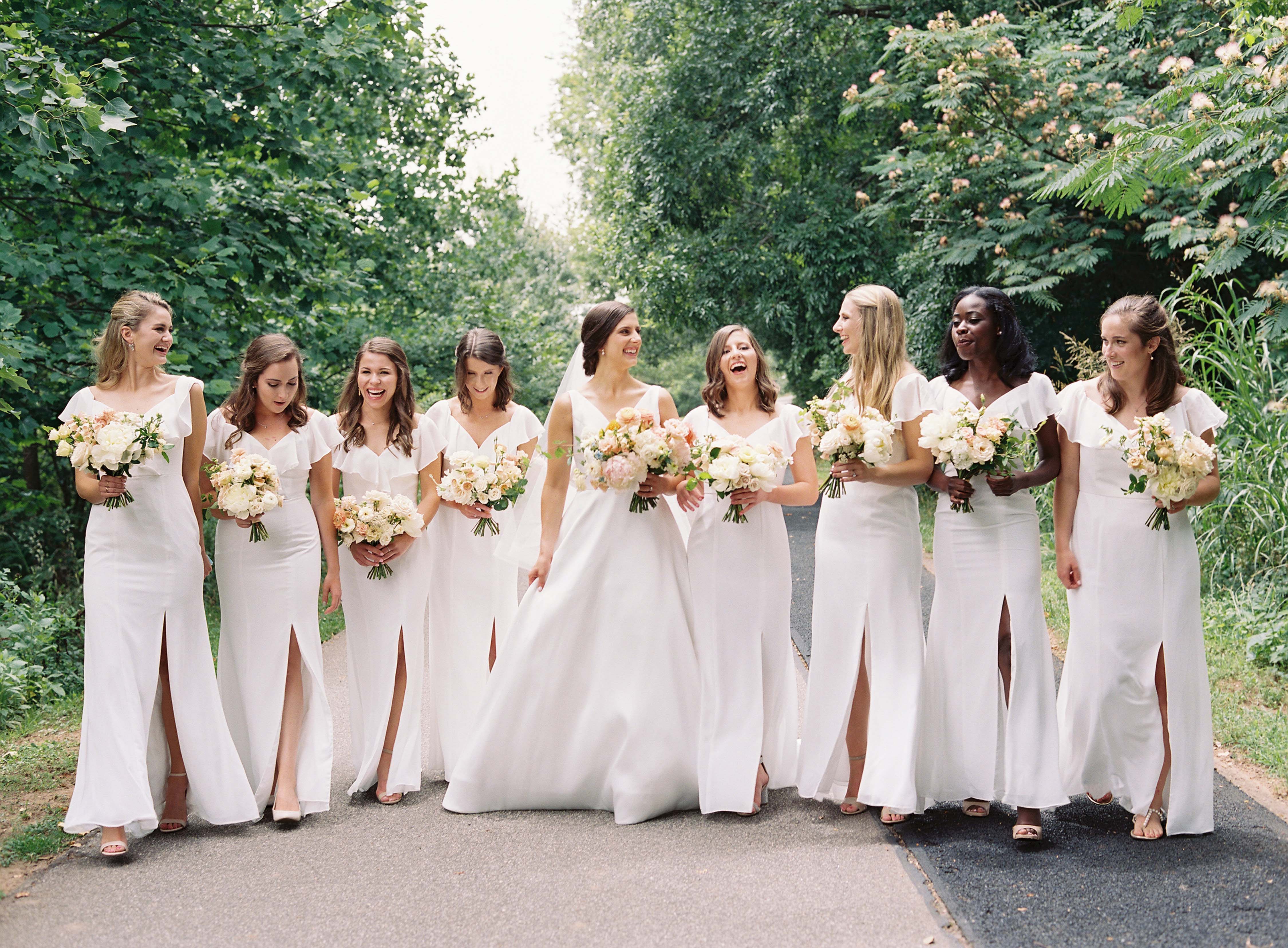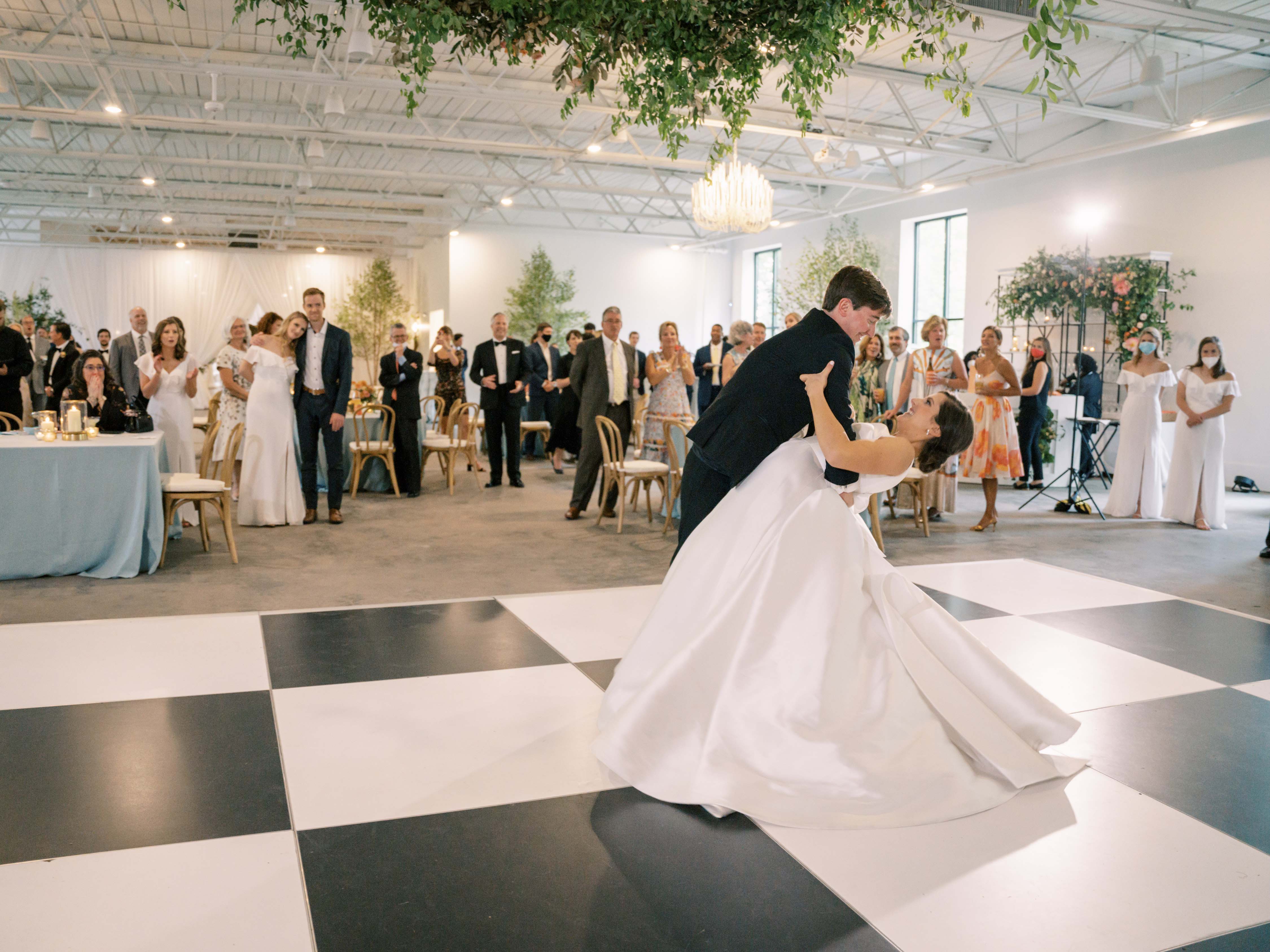 This wedding was a wild one for us because it was our only 2020 large event that wasn’t postponed. It was June, so in the middle of the pandemic, and Jessica, the wedding planner, worked with our bride to change the venue to Westfield at the last minute to allow for much more space for guests to spread out. The dramatic change in venue size came with a nearly double flower order just a few weeks before the event. Westfield is such a large building with tall ceilings, we had to really increase the number and scale of our installations to fill out the space. Luckily our bride and her family were on board and what resulted is one of our favorite weddings to date with a total of eleven large-scale floral installations, all constructed and designed on site.