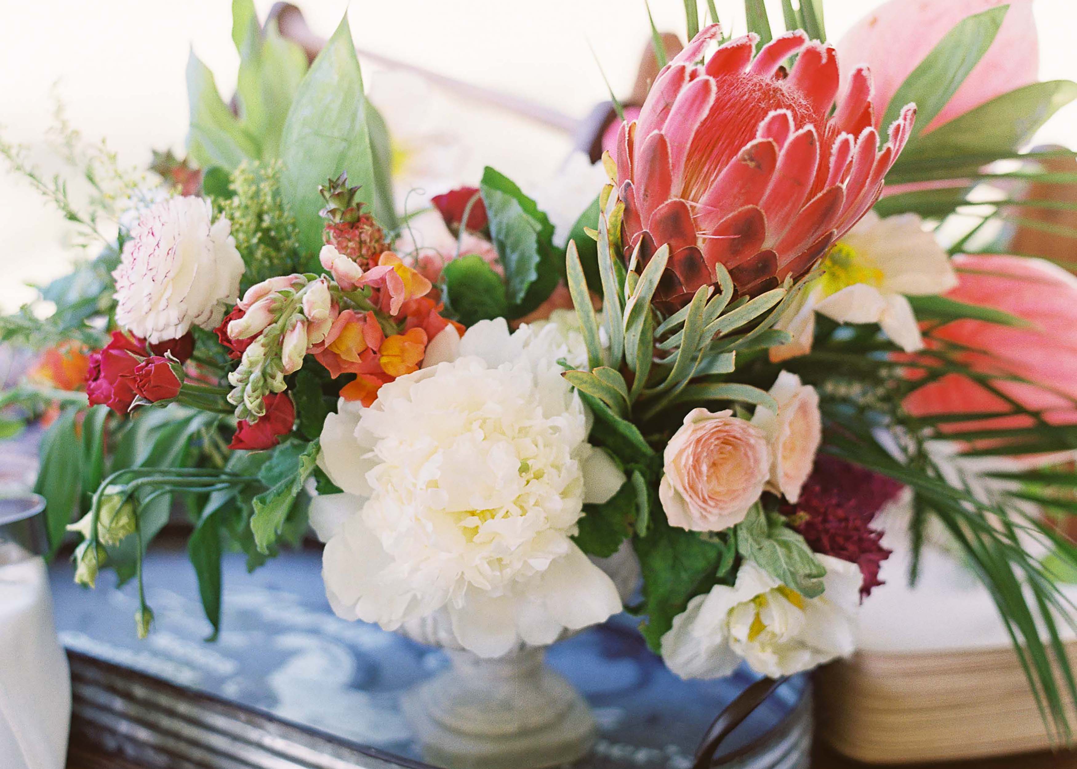This lilac spring wedding will forever be a team favorite. About an hour from our studio in Columbia, Aiken is a gem of a small town with a rich history and gorgeous Southern architecture. Julia, the bride, is based in NYC but returns to Aiken with family every year. She brought us on board alongside GLDN planner, Meredith, to flower the weekend. On Friday, we filled vintage trophies with poppies for a Rehearsal Dinner at the Polo Track, followed by a welcome party at the historic Wilcox Hotel. Saturday’s ceremony was a perfect spring evening at Joye Cottage followed by a reception in a sailcloth tent with one of the most beautiful tablescapes we have ever done. It was Sunday’s pool party brunch with sprawling balloon arches and tropical flowers that tops them all as the most fun.
